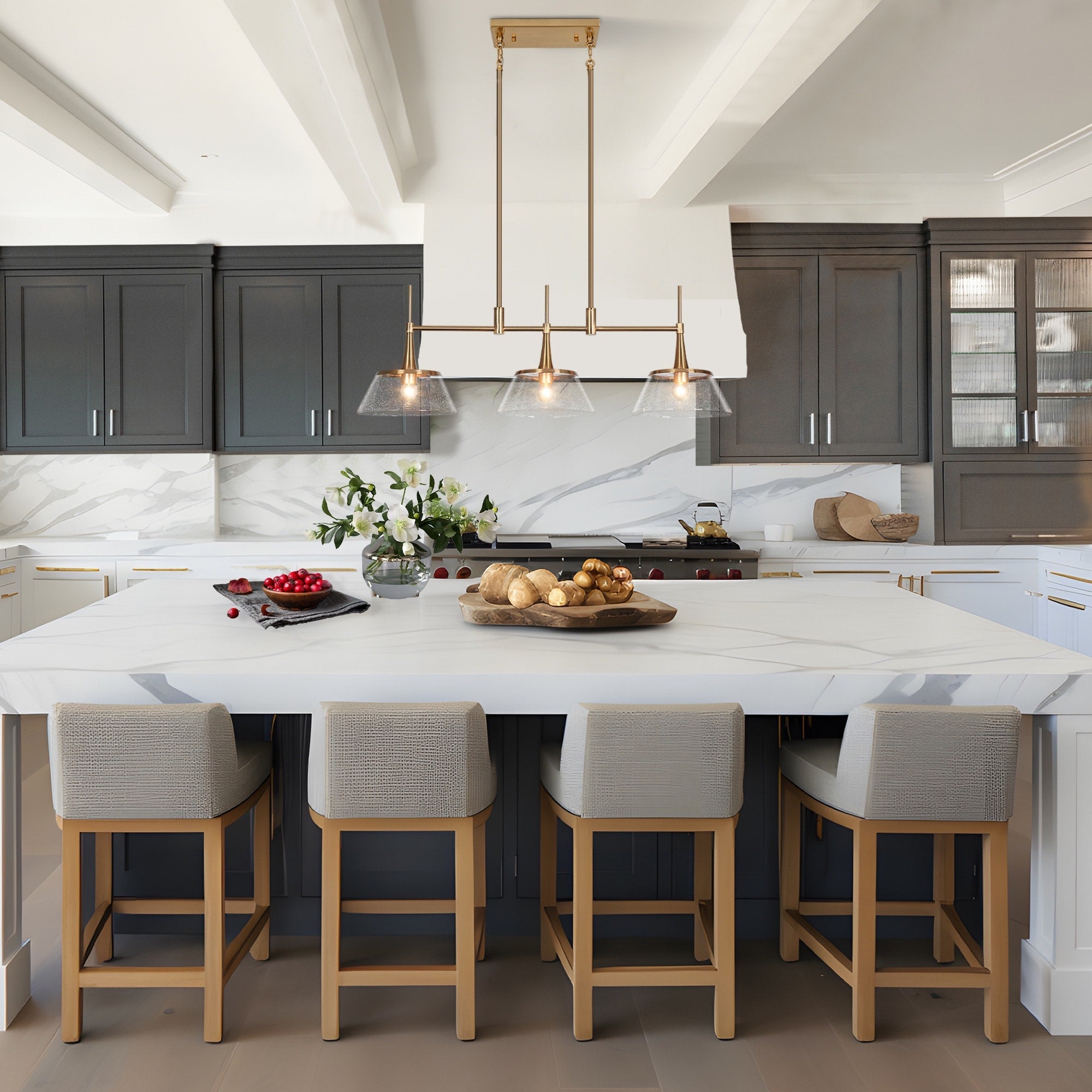 Lustre moderne Mola en verre grainé doré à 3 lumières, luminaire suspendu linéaire pour salle à manger -