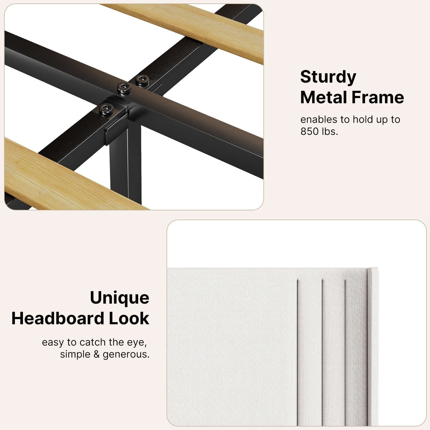 • Assemblage facile : ce cadre de lit est simple à assembler avec tous les outils et instructions inclus, vous pouvez donc l'installer en un rien de temps et profiter de son confort et de sa beauté.